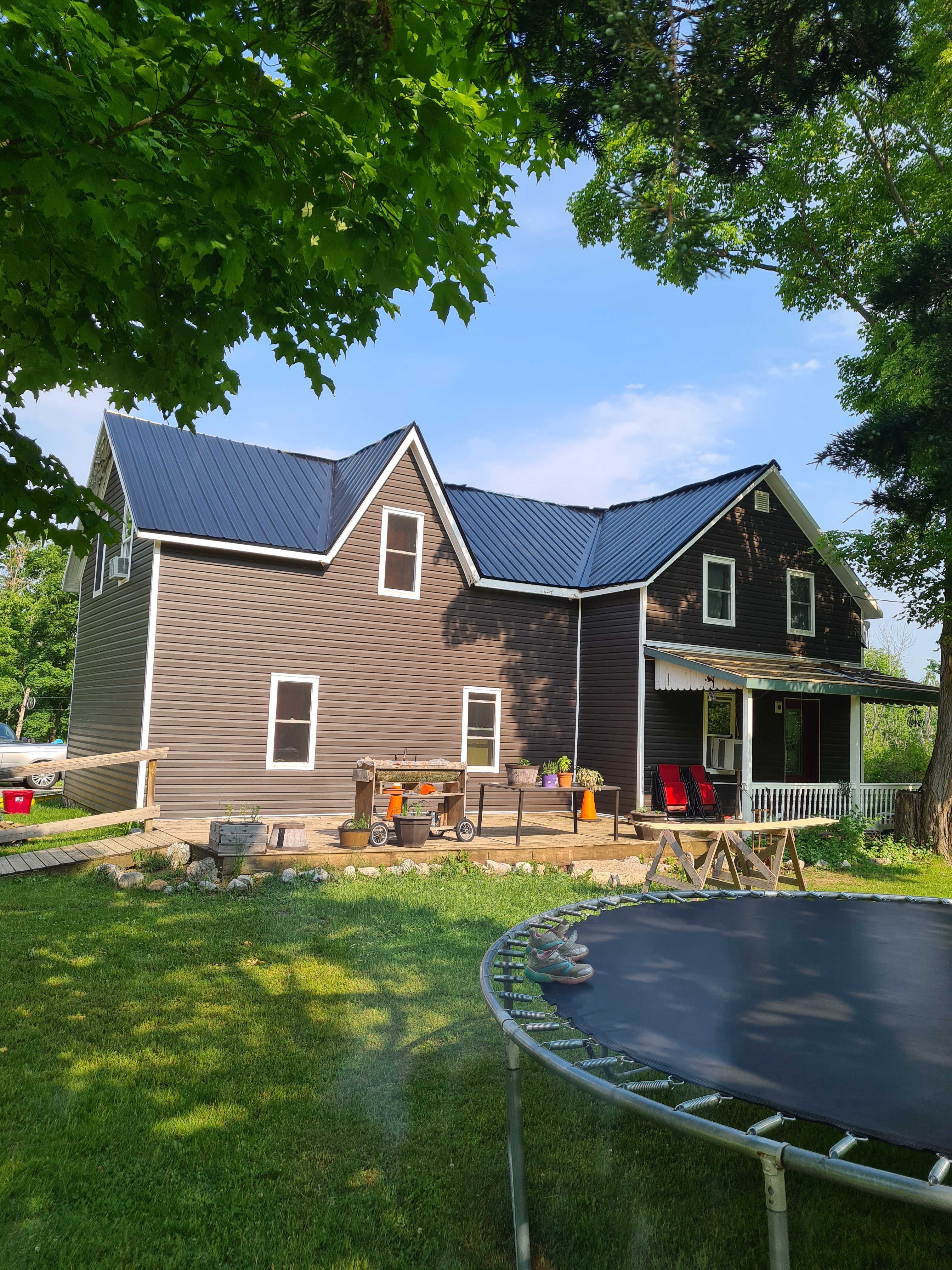 This deteriorating 1800s home received a full exterior transformation to restore both its structure and curb appeal. We installed a durable steel roof, wrapped all windows in aluminum for lasting protection, added foam insulation for energy efficiency, and replaced the soffit, fascia, and eavestroughs to ensure proper ventilation and drainage. The renovation was finished with board-and-batten vinyl siding, giving the home a fresh, durable, and timeless exterior while preserving its historic character.